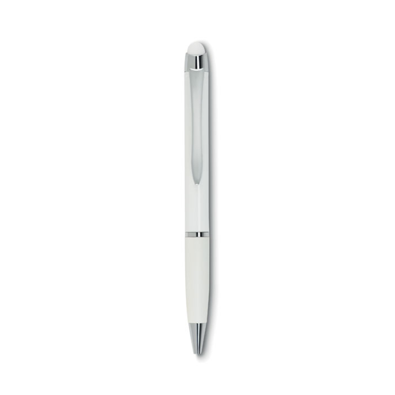 Twist action ball pen in aluminium with stylus and matching coloured body barrel and top. Blue ink.