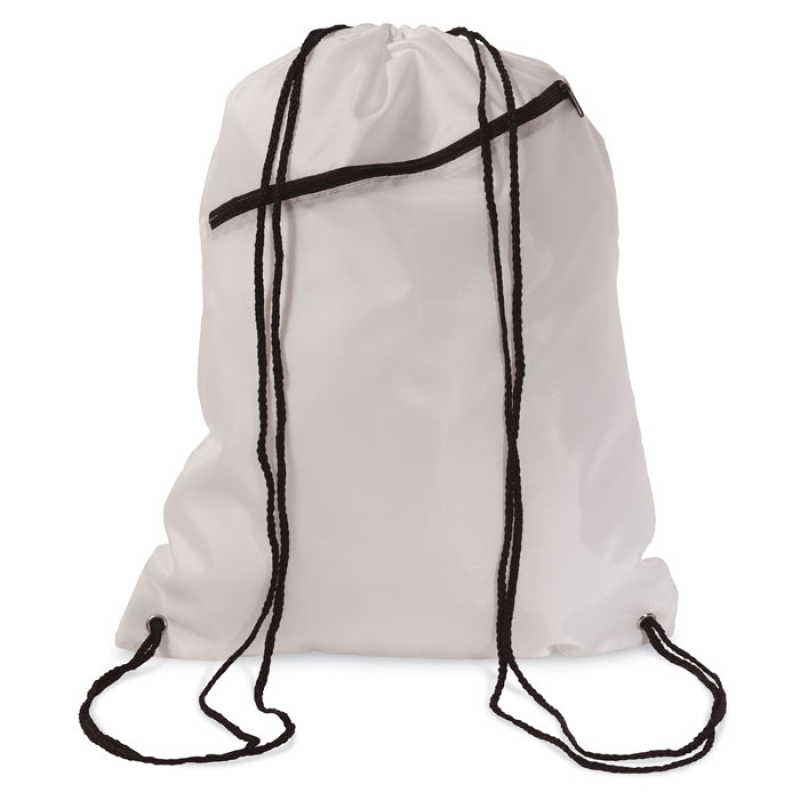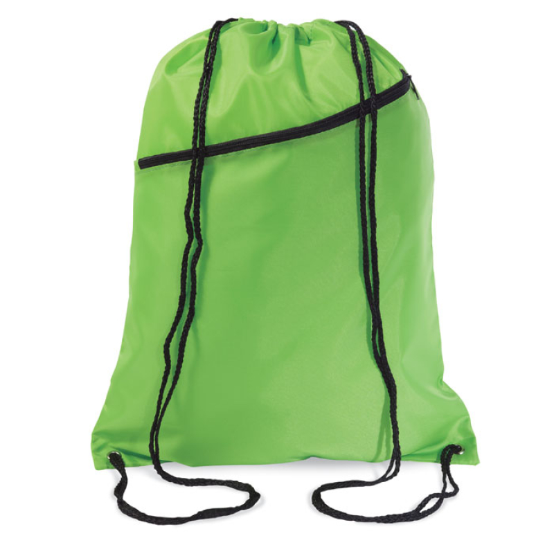 Large drawstring bag in 190T polyester with front pocket. Sublimation print available on white item only.