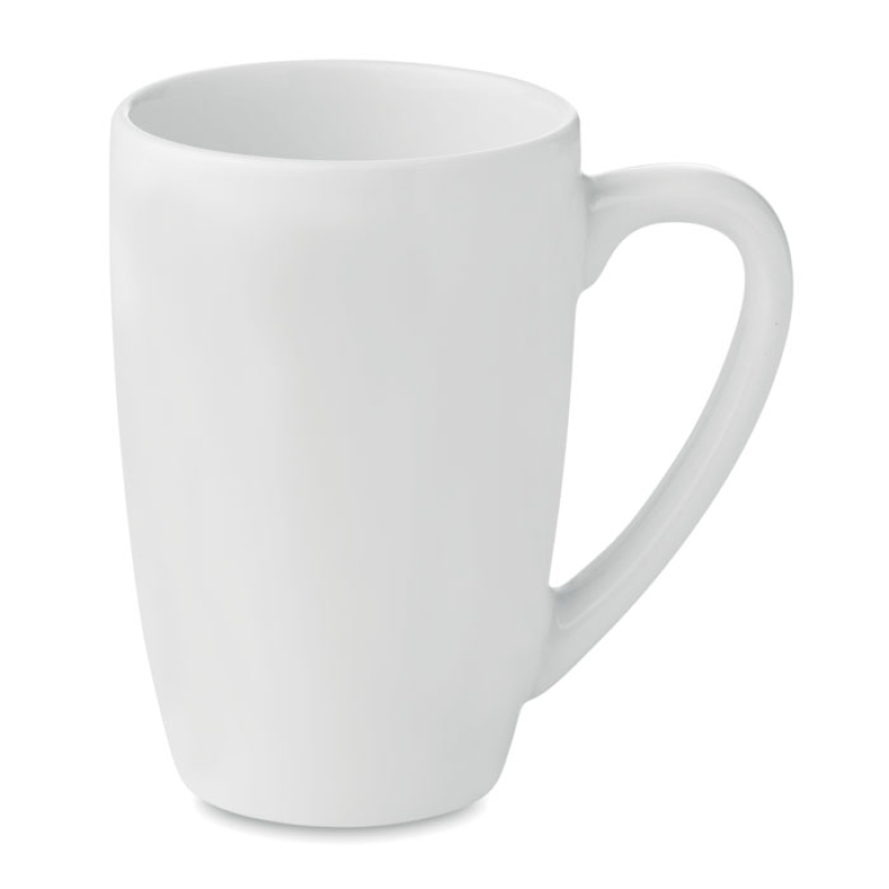 Ceramic tea mug of 300 ml capacity. Individual packing in white carton box. Pad printing is not dishwasher safe. Ceramic transfer is dishwasher safe.