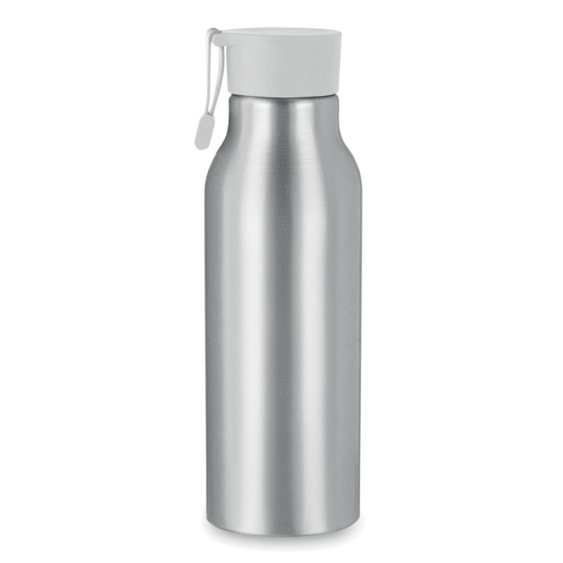 Single wall aluminium bottle with PP lid and silicone strap. Capacity: 500 ml.