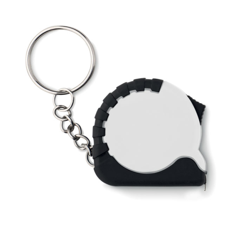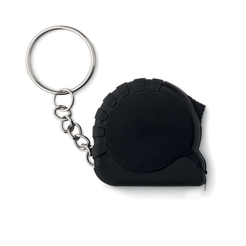 Small measuring tape key ring in ABS casing and rubber edges. 1m length.