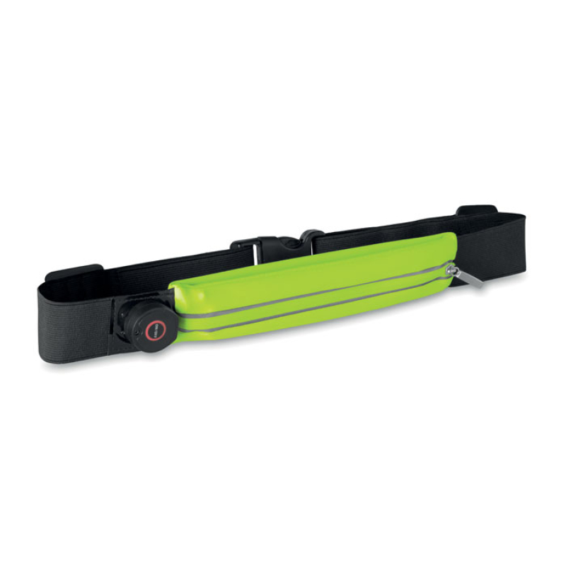 Adjustable waist belt with LED light (triple mode). Zippered waterproof and product in cotton and lycra material with PU backing.