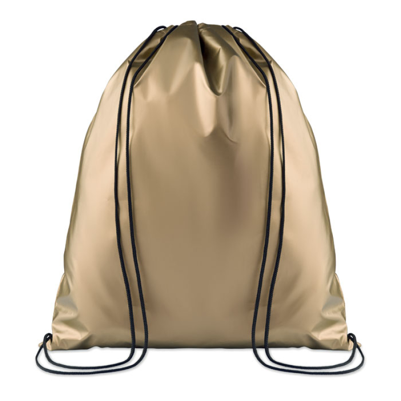 Drawstring bag in 190T polyester with coating on surface.