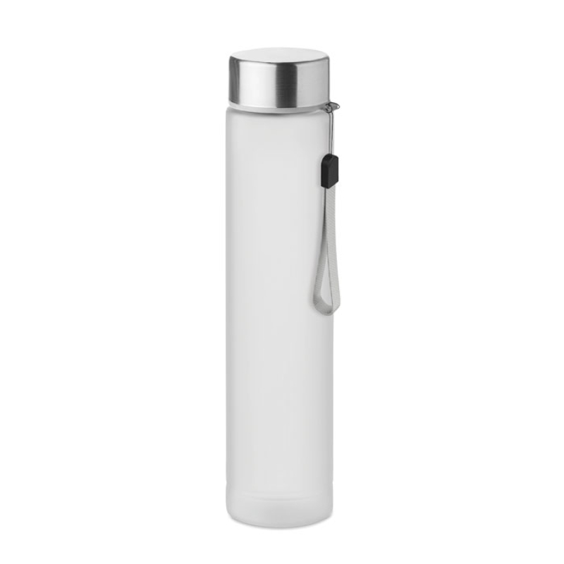 Travel bottle in Tritan™ which is BPA free with stainless steel lid. Capacity: 300 ml. Not suitable for carbonated drinks. Leak free.
