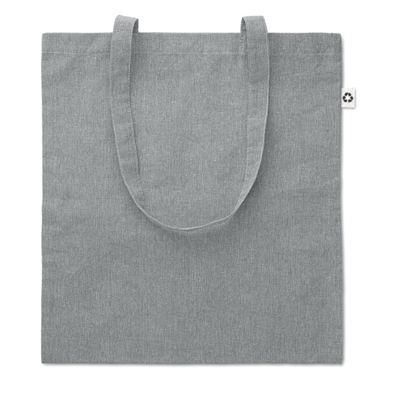 2 tone recycled cotton and recycled polyester shopping bag with long handles. Approx. 140 gr/m². This item can shrink after printing.