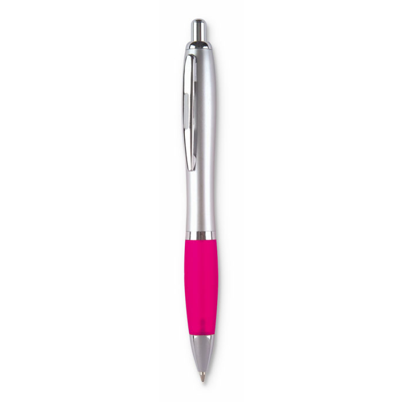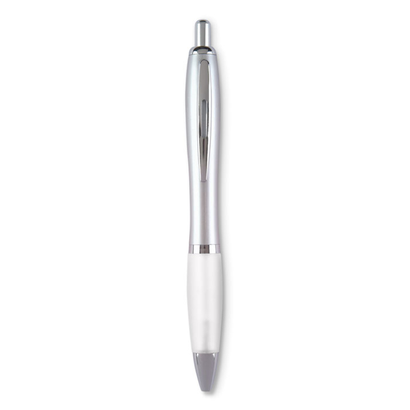 Push button ball pen in ABS with satin body and soft grip. Blue ink.