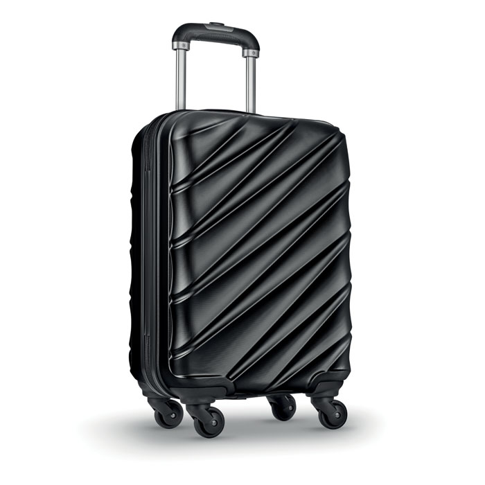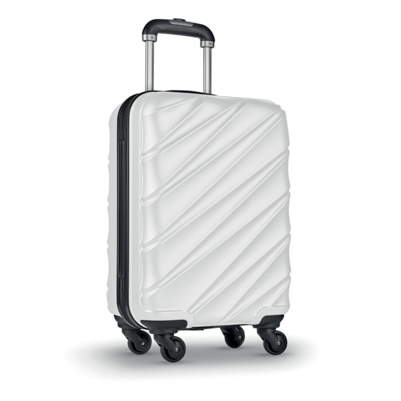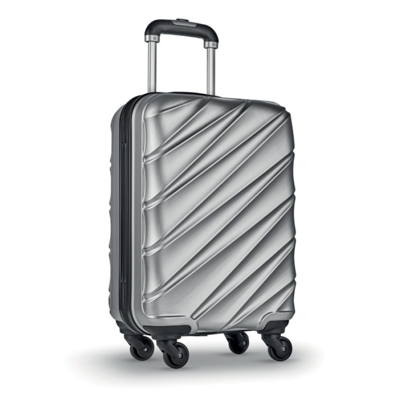 20 inch 4 wheel hard-shell trolley in anti-scratch shiny PET. 1 main compartment and inner compartment. Includes a security lock.