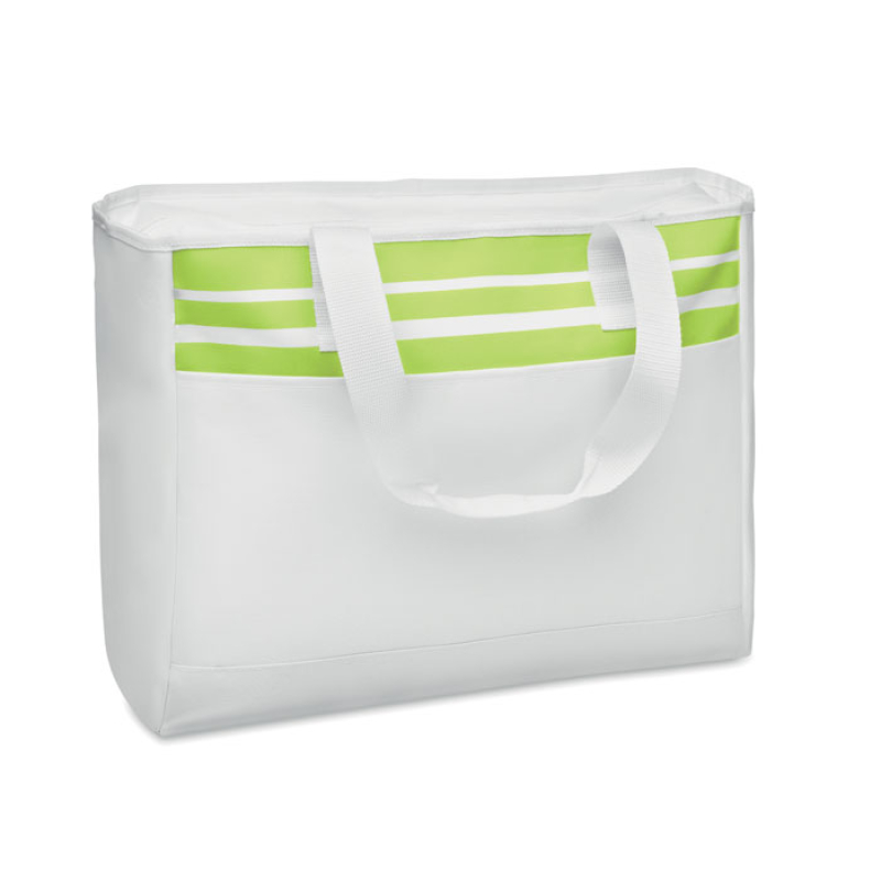 Tote bag with velcro front pocket, 600D polyester and with 210D lining and handles, zipper pocket inside.