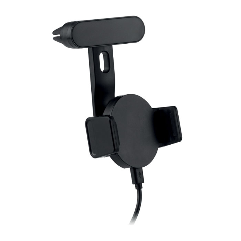 Car wireless charger mount phone holder. 360 degree rotation. Connect device, place smartphone on it to begin charging. Output: DC 5V/1.0A. Compatible latest androids, iPhone® 8, X and newer. Ideal for full colour personalisation.
