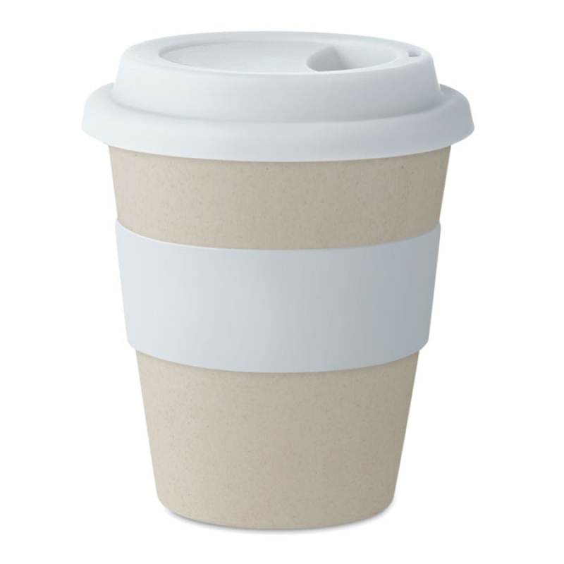 Single wall espresso tumbler in 50% bamboo and 50% PP with silicone lid and grip. Capacity: 120 ml. Not suitable for use in microwave oven. ''Not available for sales in the EU''