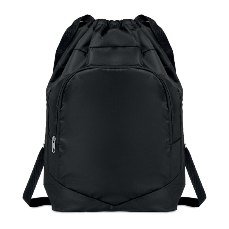 Sport rucksack in 210D ripstop, including zippered outer pocket with mesh compartment and inner PEVA wet/dry compartments.
