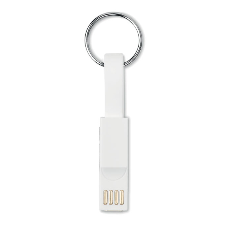 Key ring with charging cable with USB-A to Micro-B (2 in 1) and Type C in TPE. Magnetic closure.