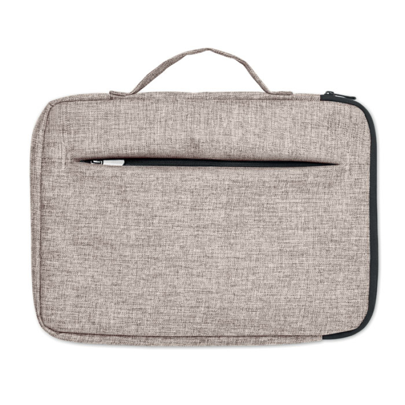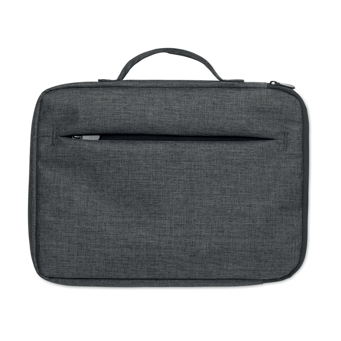 13 inch Laptop bag padded in 600D 2 tone Polyester with handle and side zipper for easy backpack use. Including trolley holder on the back.