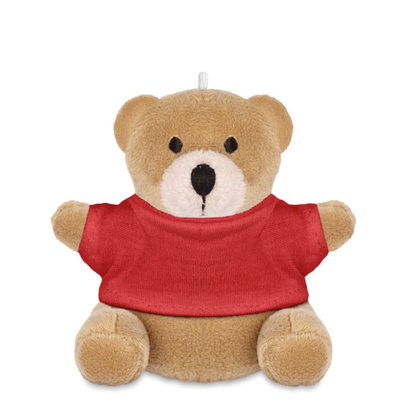 Teddy bear plush. 100% cotton t-shirt for logo imprint.