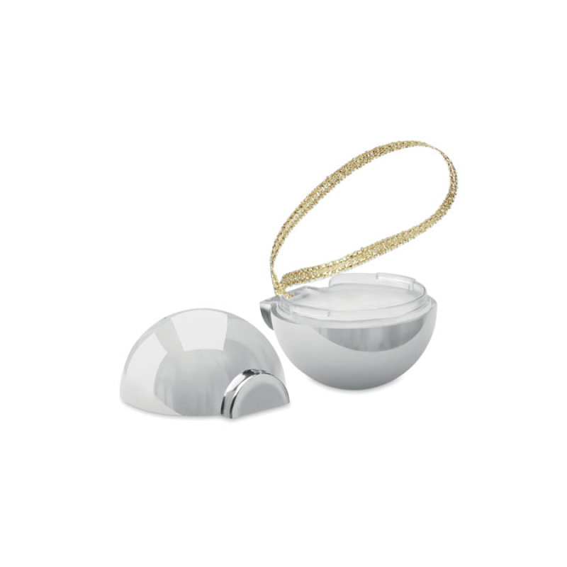 Natural lip balm in round Christmas bauble shaped holder in UV metallic finish. Vanilla flavour. Dermatologically tested. SPF10.
