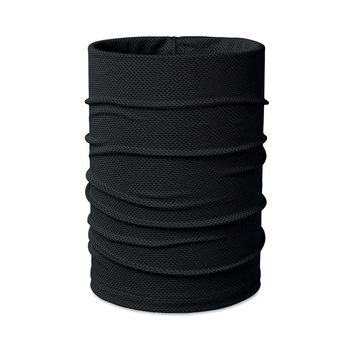 Multifunctional scarf in 45% polyester, 55% cationic dyed polyester non woven microfiber cooling sports.