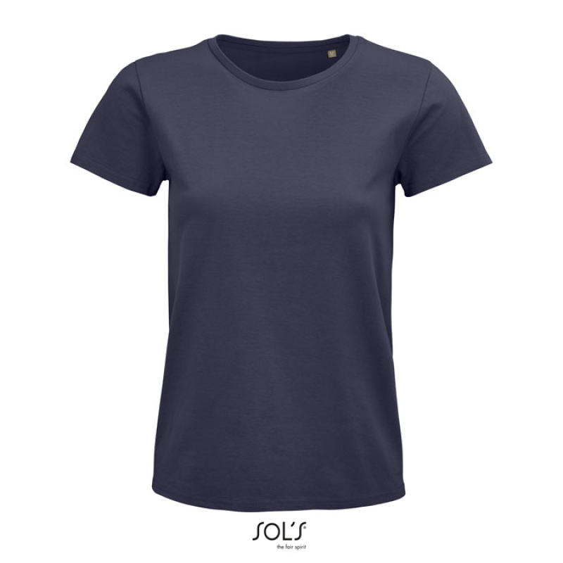 SOL'S PIONEER WOMEN, women's Round-Neck Fitted Jersey T-Shirt, 100% Organically Grown Cotton, Natural Finish For A Softer And Smoother Feel Jersey 175, 100% Cotton Ribbed Collar, Round Neck, Neck Tape, Fitted Cut, Tubular, (1) Ash : 98 % Organic Cotton / 2 % Viscose, (2) Grey Melange : 85 % Organic Cotton / 15 % Viscose. About Sizes Matching, Please Refer To The Size Chart In The Product Documentation Section.