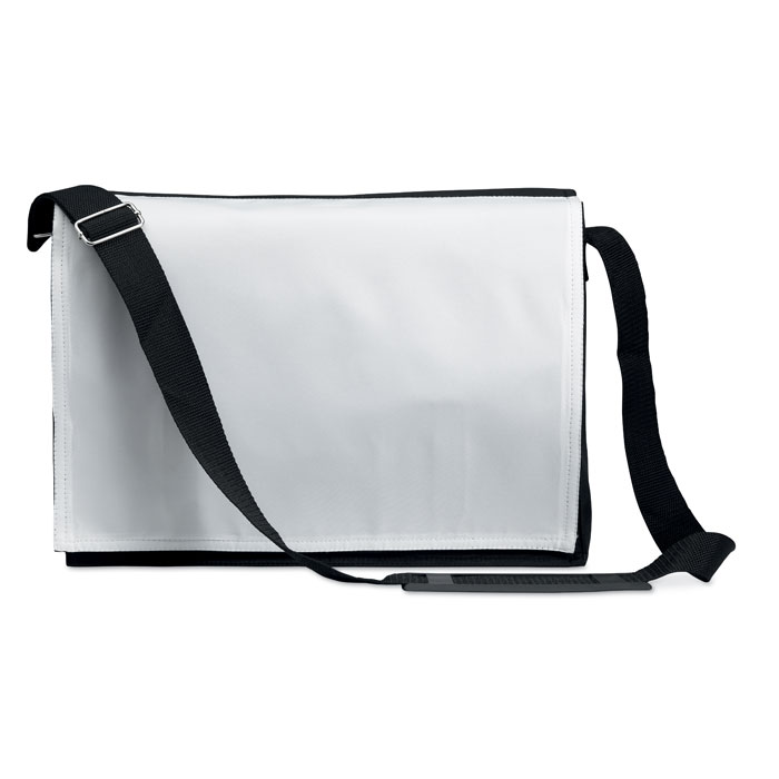 Sublimation document shoulder bag with long adjustable strap in microfiber with main compartment.