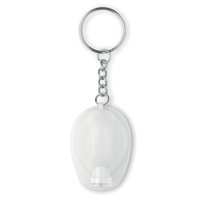 Key ring made of ABS in workers helmet shape with torch. 3 AG10 battery included.