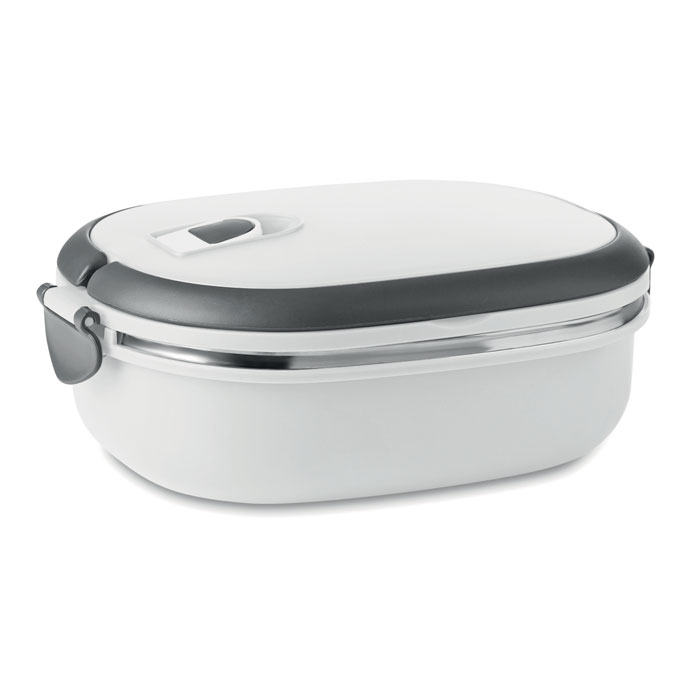 Lunch box with air tight lid made of PP out side and stainless steel inside.