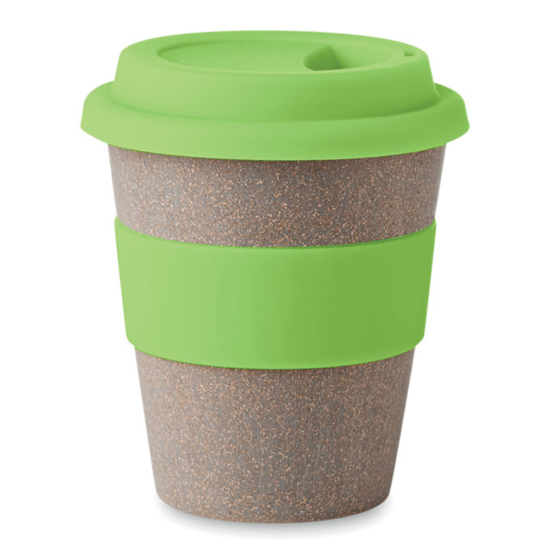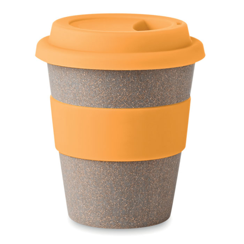 Single wall tumbler in 50% bamboo fibre and 50% PP with silicone lid and grip. Capacity 350 ml. As this is a single walled mug heat transfer can still occur. Not suitable for use in microwave oven. ''Not available for sales in the EU''