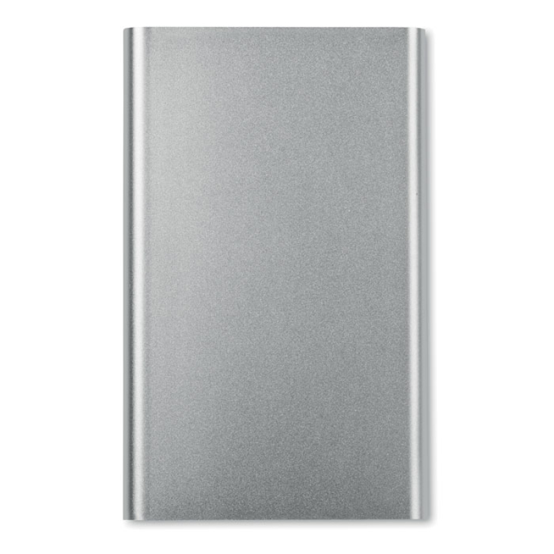 Power bank 4000 mAh in aluminium. Capacity for smartphone use, out put current DC5V/1A. Includes indicating light and USB cable with micro usb plug.