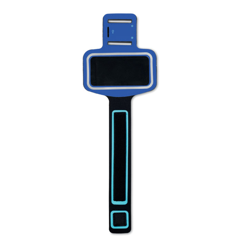Adjustable armband in neoprene with transparent front with reflective detail.